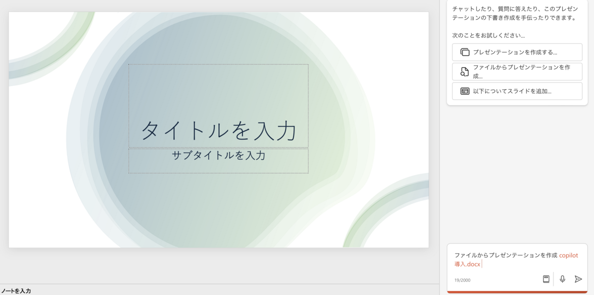5)このファイルをPowerPointのCopilotからファイルを指定
